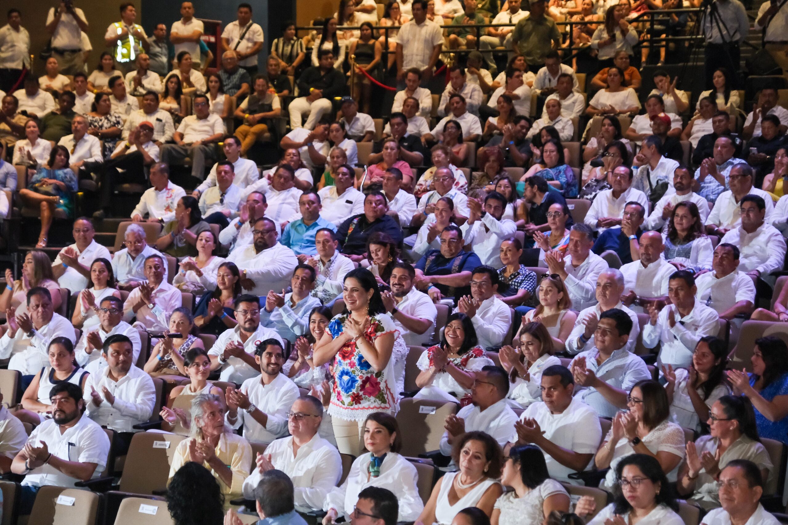 En el Teatro de la Ciudad “Xaman Há”, declarado recinto oficial para esta sesión solemne, la gobernadora Mara Lezama expresó su satisfacción por estar en esta celebración, en donde estuvieron mujeres y hombres que han dejado huella en la historia viva de Solidaridad.